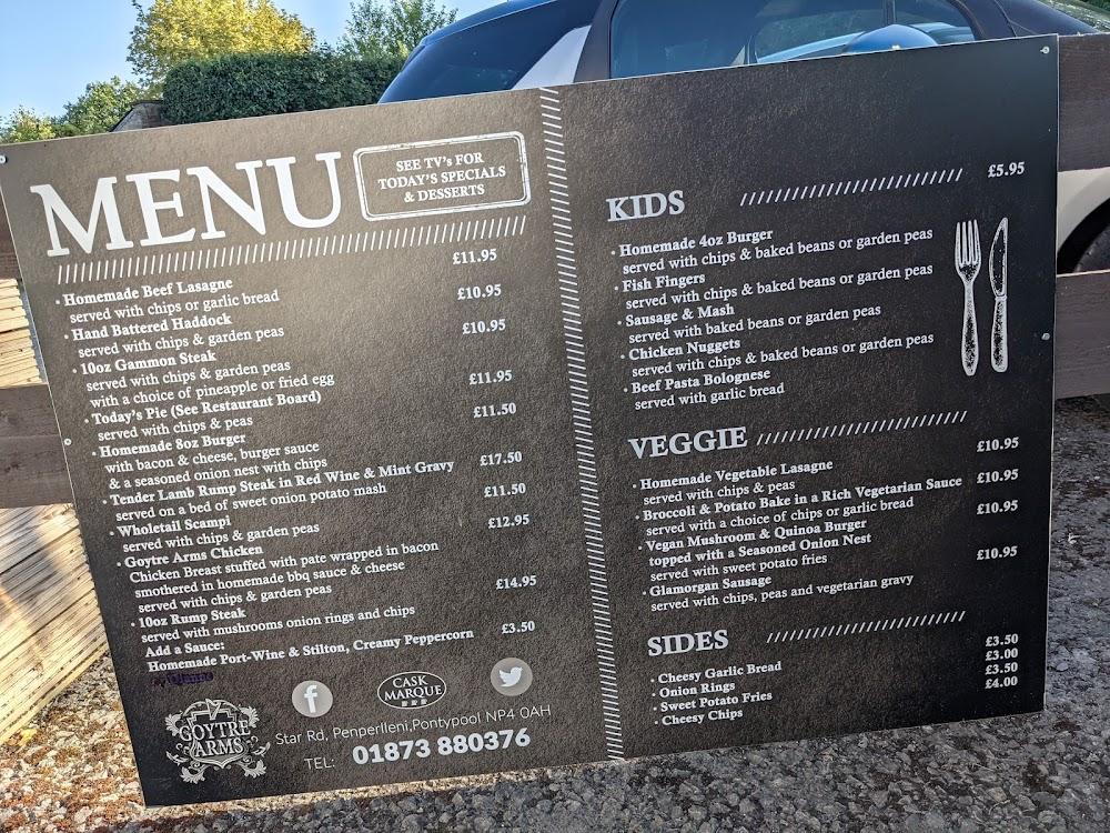 Goytre Arms sits in the picturesque small village of Penperlleni, nestled right on the edge of the beautiful Monmouthshire countryside. Located just a short drive from Pontypool, this gastropub enjoys the charm of a rural community while still being accessible for a relaxed day out. The pub features a spacious interior, ideal for families and groups, accompanied by friendly service that makes you feel right at home. The historic features of the building blend seamlessly with modern touches, creating a cosy atmosphere that invites guests to unwind. With a lovely garden and outdoor seating areas, visitors can enjoy pleasant weather while sipping on their favorite drinks. Free parking is also available, making it easy for families and tourists to come and enjoy delicious meals without any hassle. The area’s scenic beauty draws many visitors, and Goytre Arms provides the perfect resting point to refresh and refuel.